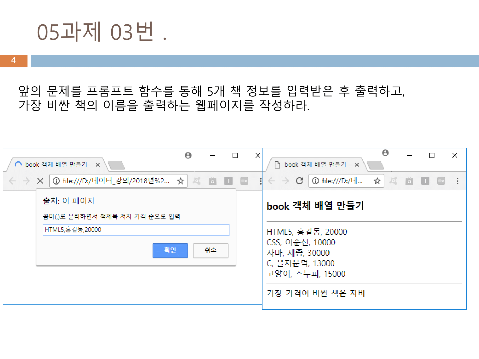 document.write("<br> 가장 가격이 비싼 책은 " + expensive.title); // 가장 비싼 책 출력