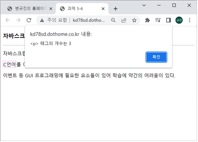 p버튼을 누르면 태그의 개수를 알림창에 띄운다.